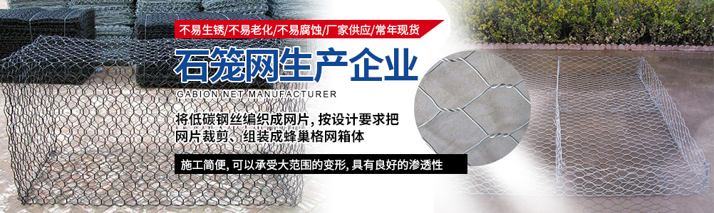本公司主要生產:石籠網、格賓網、重型六角網、鍍高爾凡格賓擋墻、雷諾護墊、綠濱墊固濱籠、耐特籠、鉛絲石籠格賓石籠、電焊石籠網、鍍鋅石籠網、河道石籠網、包塑石籠網、勾花網、高爾凡石籠網、三擰石籠網、五擰石籠網等,可用于保護和支持河道、海堤、山坡、路橋、水庫及其他土木工程, 是防洪固堤工程的上好材料。以可靠的質量,滿意的售后服務深受新老客戶的好評。